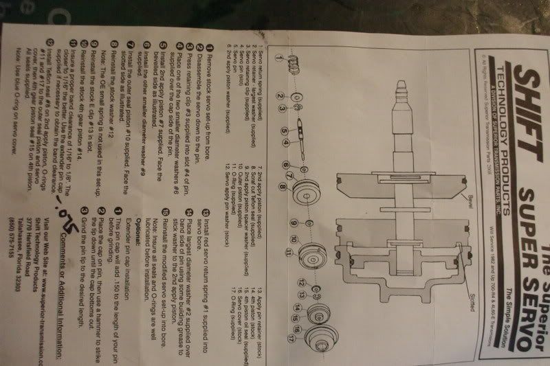 Here's a little information for those wanting to know what a servo installation looks like and details. This is a full 1-2 and 4th billet servo kit from 4l60-e.com aka transmissioncenter.net . I believe these are Fairbanks/Superior brand servos similar to these minus the small blue spring.