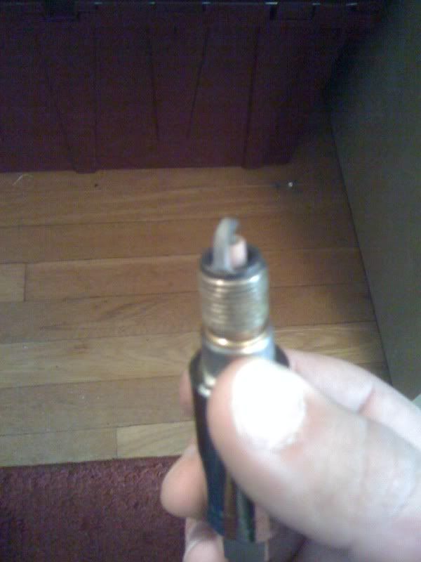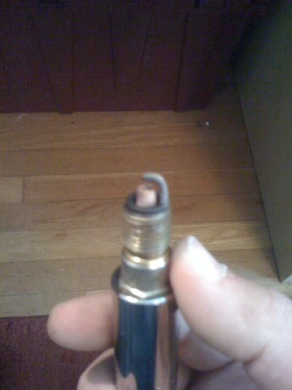 Pulled a plug from my #1 cylinder because I think Im getting some detonation. The ceramic seems to be the right color except for the front side (open end of the electrode) there is a slightly darker coloration. Got some white sparkle all over the ceramic too. Blue line is right on top of the meeting point where the strap meets the thread housing. Am I in trouble and would some colder plugs remedy my situation? Ive got a 93 tune, but the gas has been so crappy this winter that I was pinging every so often, no matter where I bought it. The motor ran great when I would run some BG 44k through the system, but once the tank is empty it goes right back to light pinging and a bit underpowered