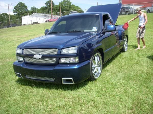 cleared headlights, ss bumper, painted grill shell, speed grill inserts, painted handles, tint, bedcover, bedrug, shaved gate, dropped 4/8, 22" incubus game wheels.