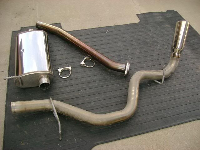 2004-2007 Silverado/Sierra Crew Cab Short Bed 1500 4.8/5.3 Cat Back Stainless Steel Rear Side Magnaflow Exhaust . Purchased about 2 months ago for $550. Traded a 2007 Classic crew cab in on a new truck so I took this back off, will not fit my new truck. Uses existing exhaust hangers and bolts. The second picture shows some damage cutting a stipped bolt off by torch, a washer should correct that. Sounds great for a single pipe exhaust. Magnaflow part number 15839.