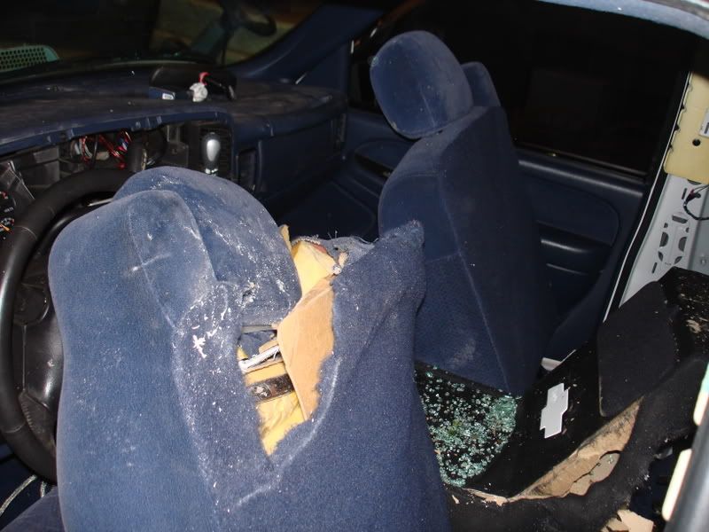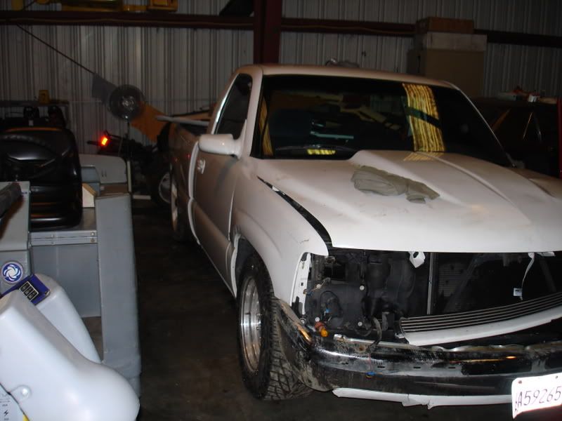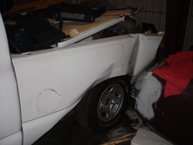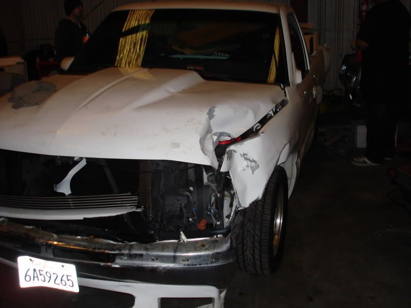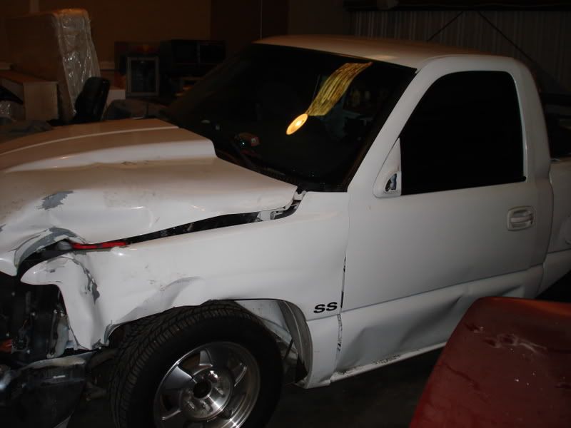 Well last sunday on my way to work i hit a bump in the road causing the back end to fish tale and spin out...it was wet out so that kinda help the cause of the fish taling. well i spun a few times then hit a light post spun one more time and landed in a ditch...well hers the pictures..