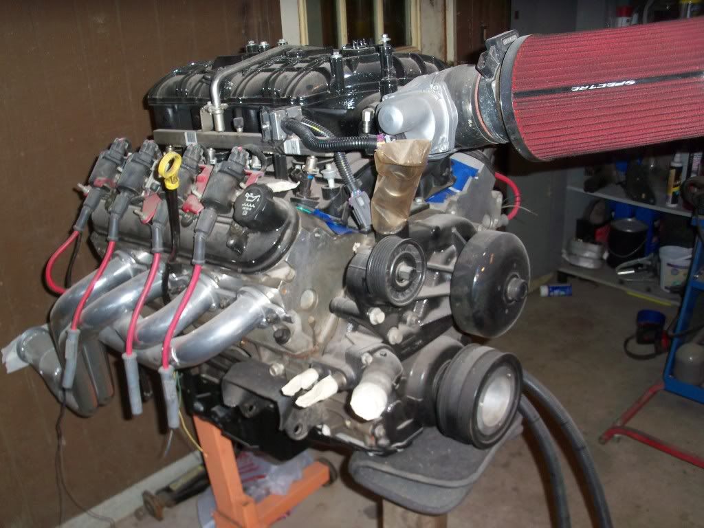 The 5.3l covered in dust. 212/218 cam, milled heads, and the usual bolt ons.