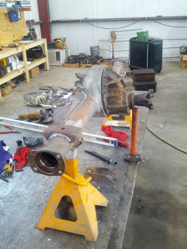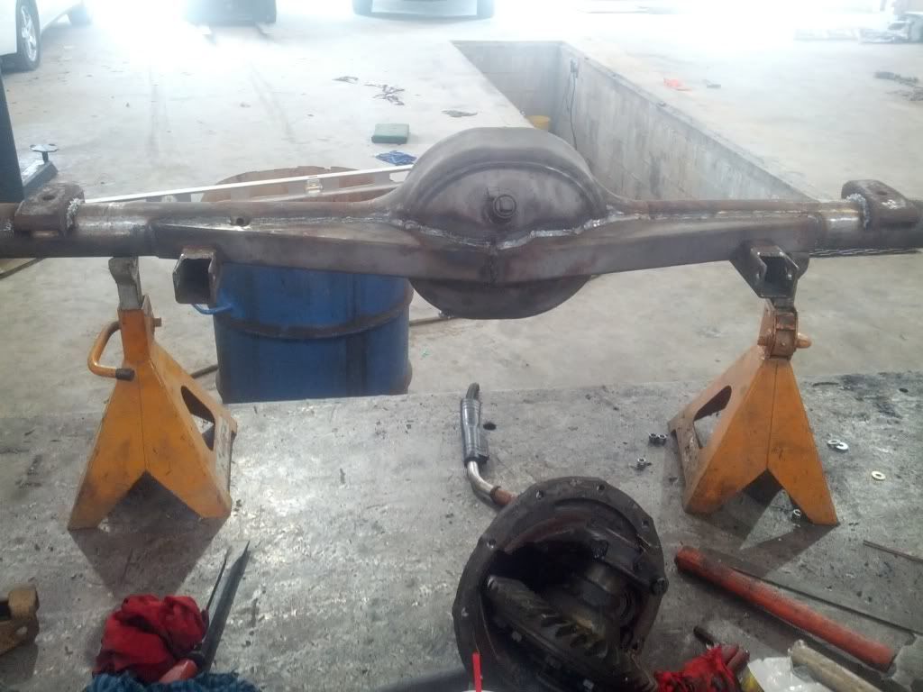 . I have the spring pads and shock mounts that I cut off one of the many 10 bolts I've destroyed that will be going on next. I'm gonna tack them on when I get the rear under the truck so that I can get my pinion angle right. The 9 will be equipped with a spool, 373's , and strange axles and 3rd member. I ordered my heim joints to build my own cal tracks per 02camaross's wright up.