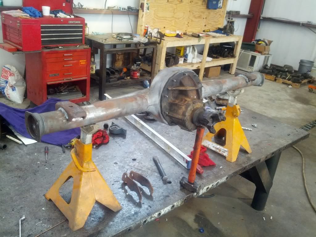 Next I bought a ford 9" with a back brace someone had tacked onto it for 100 bucks. Took it apart and found it had fairly new brakes and was very clean inside the brake drums.
