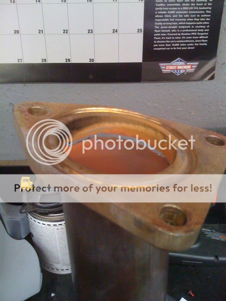 well i broke some thing else i developed a perty good exhaust leak after my last run at the track on friday. i thought it was just the bolts on the collector backed out but i was wrong. i was only running about 14#'s when this happened, but rick over at trick performance is going to fix it back for me. Iknew having them here locally would pay off and this is not the first time he has helped me out