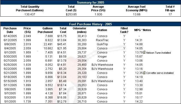 , so the MPG might make even better gains after that. I expect once I re-learn how to drive "normal," I'll be getting even better MPG. This chart is my MPG as of 6/13/2005